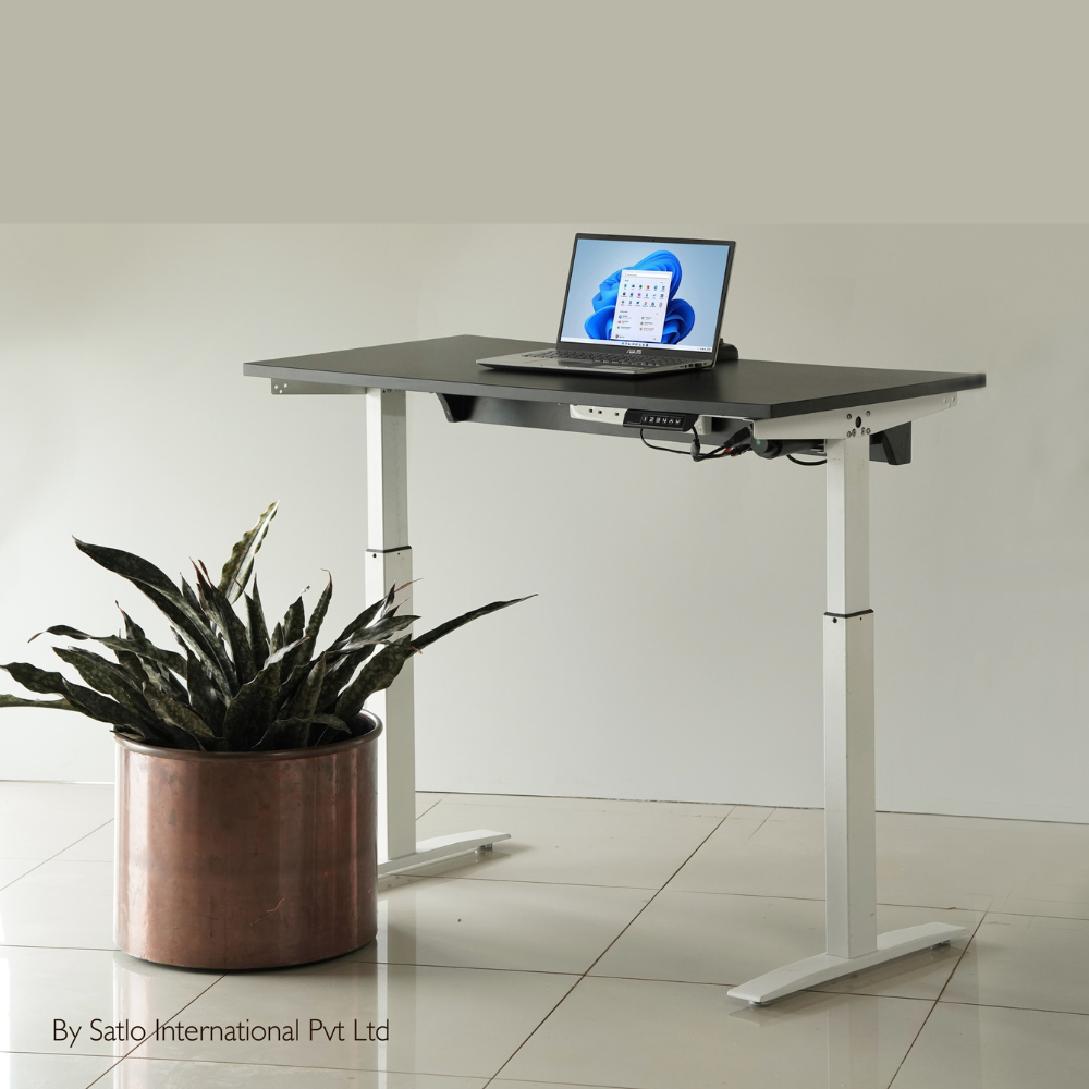 Upgrade your workspace with our Electric Height Adjustable Table, designed for durability and comfort. Built with a powder-coated heavy-duty steel box bar frame and a machinery edge-banded 25mm melamine top, this table offers both strength and modern aesthetics.