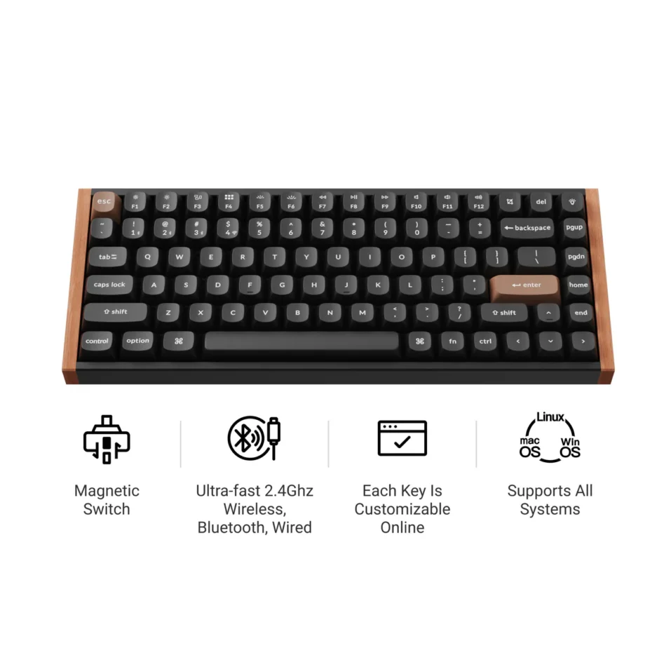Forever change your gaming and typing experience with the Keychron K2 HE, the only keyboard to win the 2025 CES Innovation Award. Merging the best of traditional mechanical keyboards with advanced magnetic tech, it delivers top-notch performance in a clean, minimalistic design with natural rosewood accents.