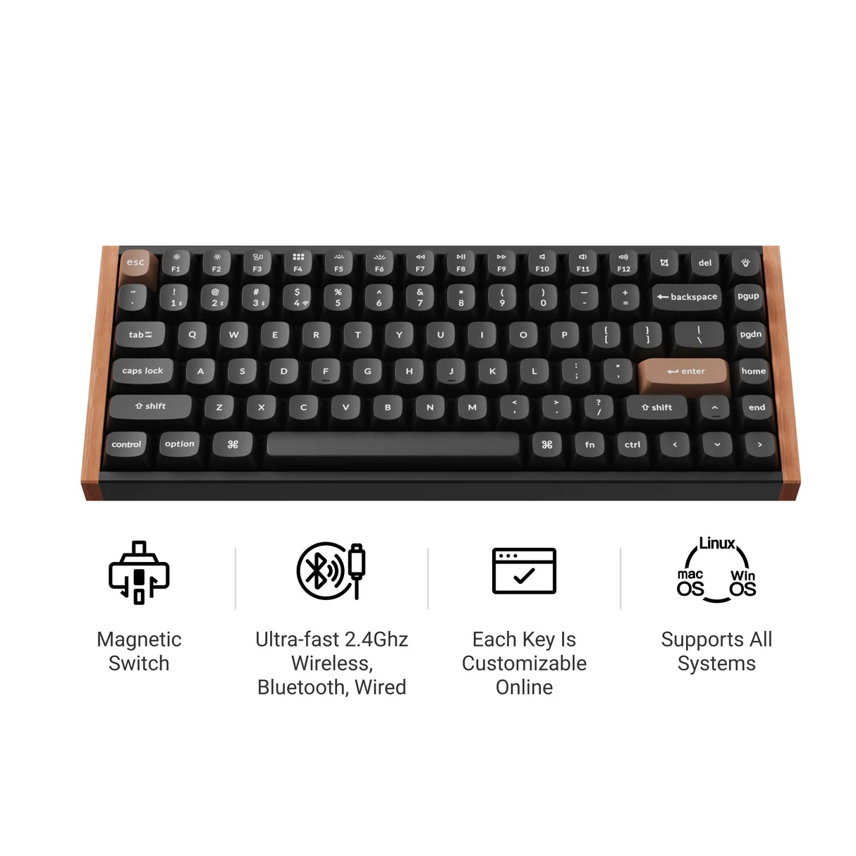 Unlike mechanical switches, which depend on physical contact, magnetic switches use magnets to detect key presses. It is effortless to swap out the switch with compatible magnetic switches.