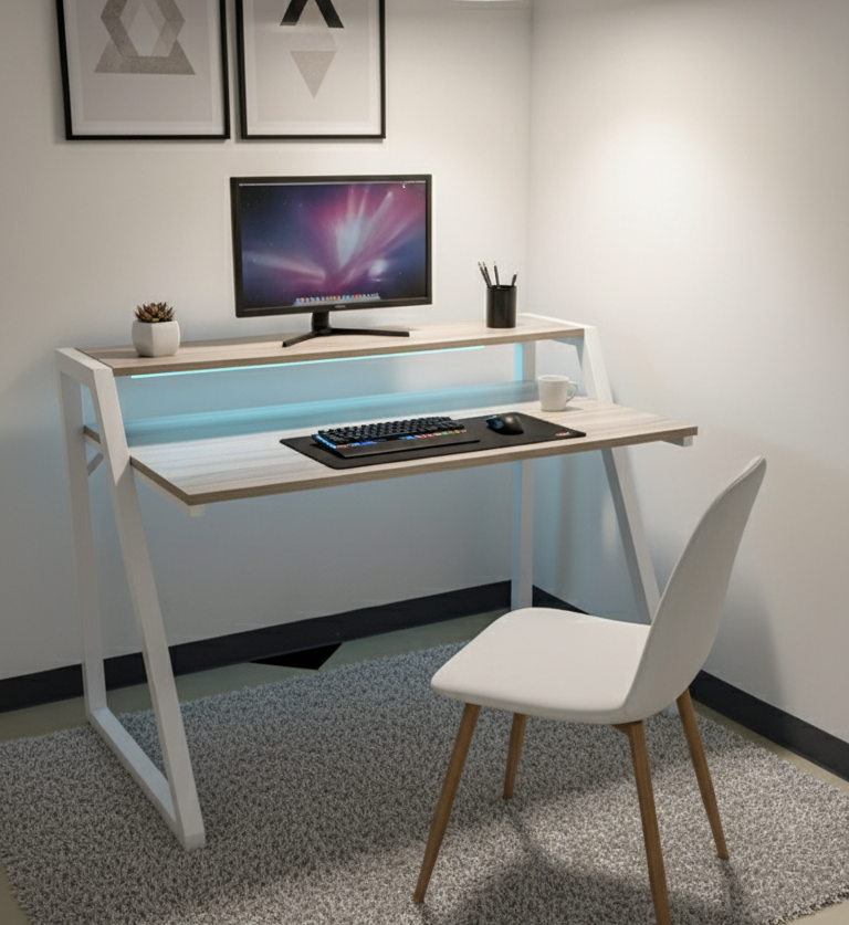 The Table with Monitor Riser is a premium desk design that combines style and functionality.