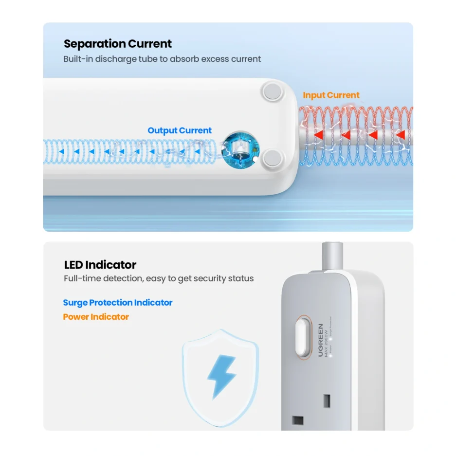 • Surge Protection Rating: 4kV and 450J protection for L-N, L-G, and N-G circuits to keep your devices safe from electrical surges and spikes.